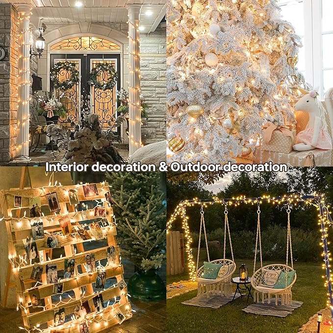 - โ Connectable Christmas Decoration Lights:Equipped with a male and female plug, you can freely connect up 5 strands end-to-end to reach a length of 115 feet.Then decorate your lighting area with any required length.Meet your application needs in various scene.These fairy plug in lights can easily customized and creates a romantic festive atmosphere.