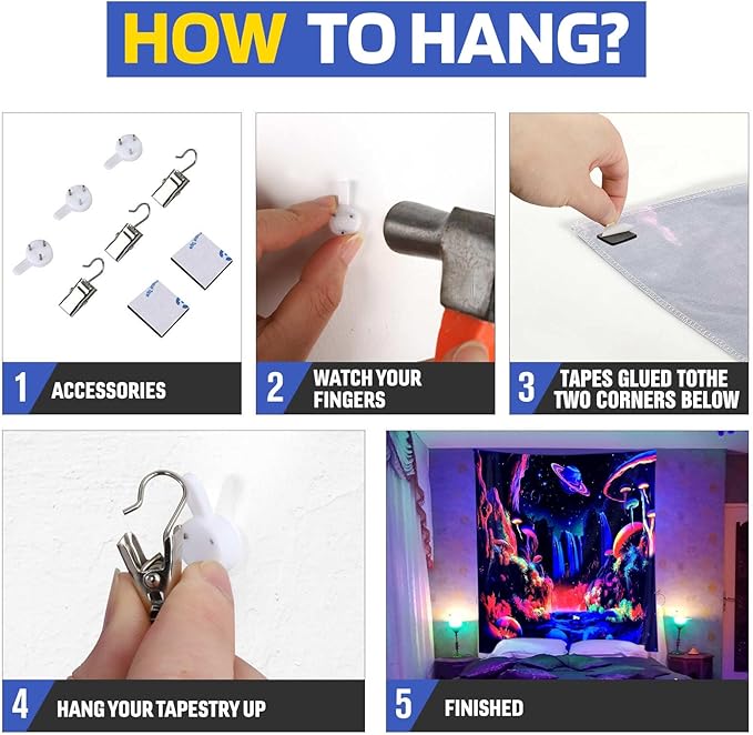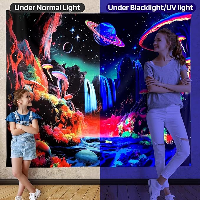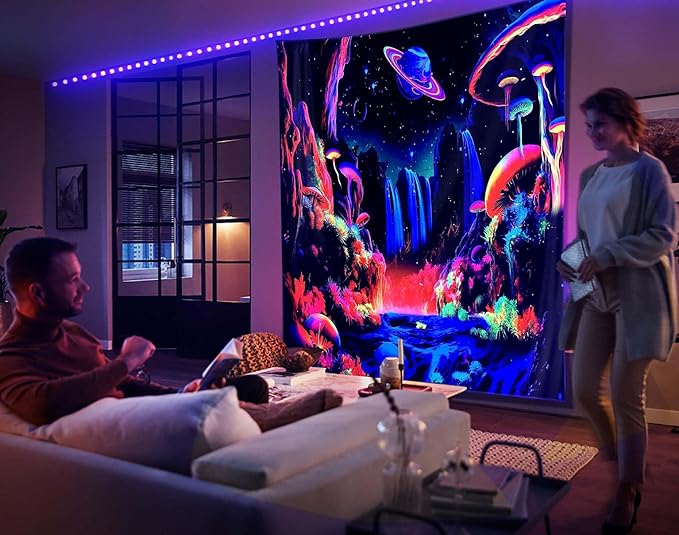 - ๐ Brighten Up Your Space: ADDWel blacklight tapestry adds a vibrant and glowing touch to any room. ADDWel tapestry is printed with a UV-reactive ink that creates a neon-like effect under blacklight. Perfect for parties, raves, and other events that require a fun and unique atmosphere.