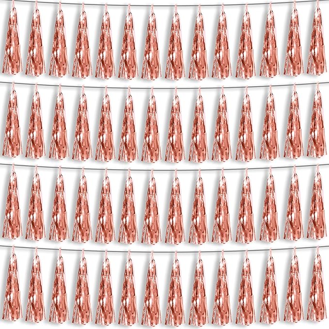 4P Rose Gold Foil Fringe Metallic Tassel Streamers Banner Tassel Garland for Parade Floats, Bachelorette, Wedding, Birthday, Halloween, Christmas, Bridal/Baby Shower Party Decorations