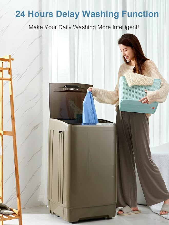- ๐ใRelief Your Handsใ: Our portable full automatic laundry washing machine only needs a small space for store, which is a solution for compact living. Once you set the washing machine program, you could just leave it alone to work and do your own staffs. It could relief your hands and you could use the time to do other things.