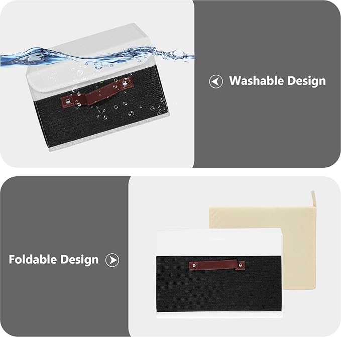 ANMINY 2PCS Storage Boxes with Lid Washable Decorative Storage Bins Basket with PU Leather Handle Foldable Linen Fabric Storage Cubes Containers for Home Closet Organizer - Black White, Small Size