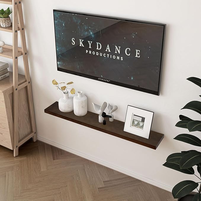 - Extra Deeper & Thicker for Storage - Each board measures 48"W x 8"D x 1.4"H. Extra deeper and thicker design in order to bring maximizes storage space and weight capacity, even hold up to 60 lb. This floating shelf taking up zero square feet, reduces clutter and highlights décor in compact spaces. It can help make full use of the empty wall, making it much more space-saving and making your room look larger and tidier.