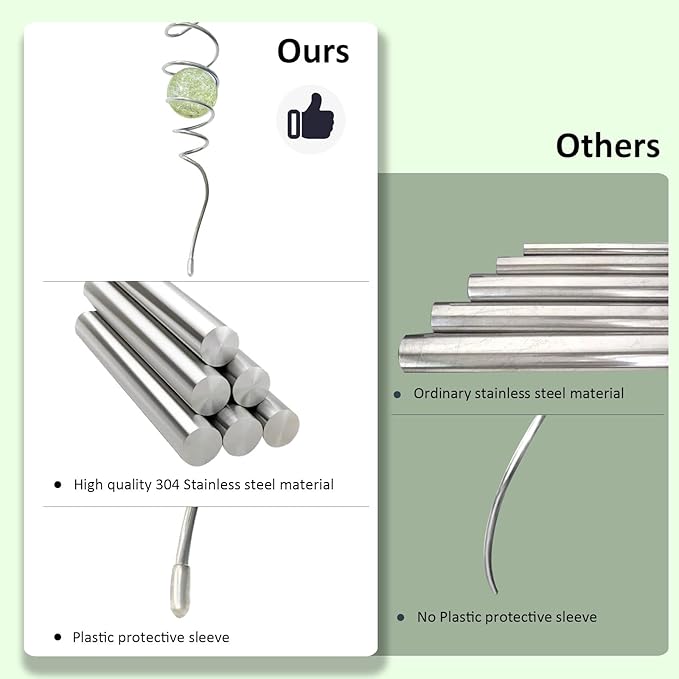 - 【High Quality】11inch height spiral tail made of #304 stainless steel wire,the 2inch colored ball made of pure solid color glass material,have good weather resistant,no fading under sunshine.Better quality than iron material with nickle plating and painting color glass ball in the market.