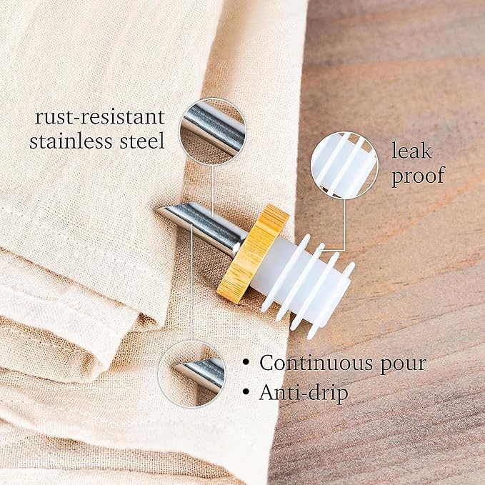 - MODERN DESIGN : The modern design of this bottle includes a matte glaze and a neutral wood cap and stainless steel cruet spout, making it a stylish and functional addition to any kitchen counter.