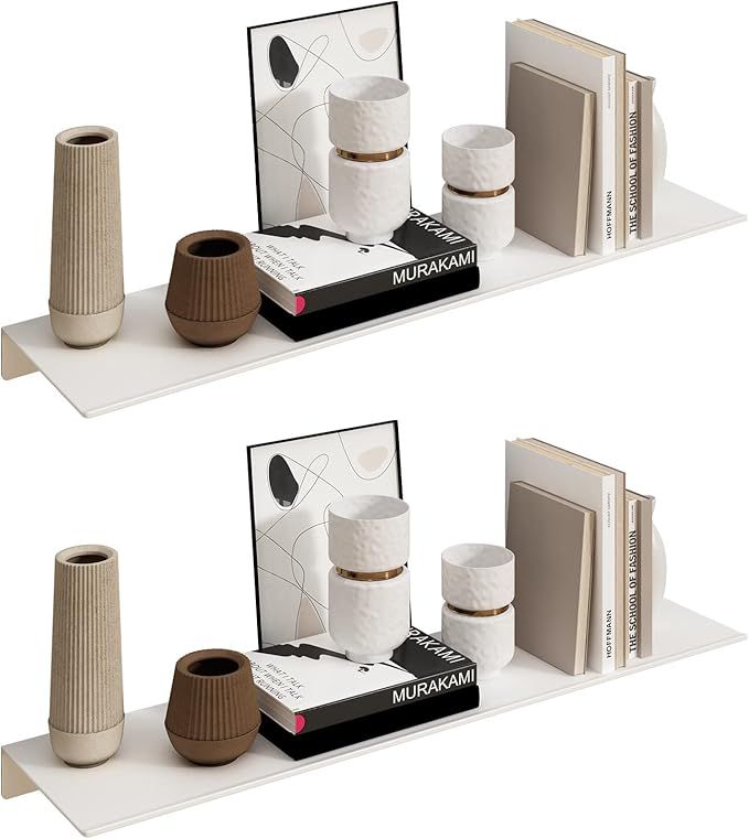 JOOM White Floating Shelves for Wall Storage, Metal Wall Shelves for Living Room, Bathroom, Kitchen, 20” Long Display Shelves for Collectibles(2 PCS)