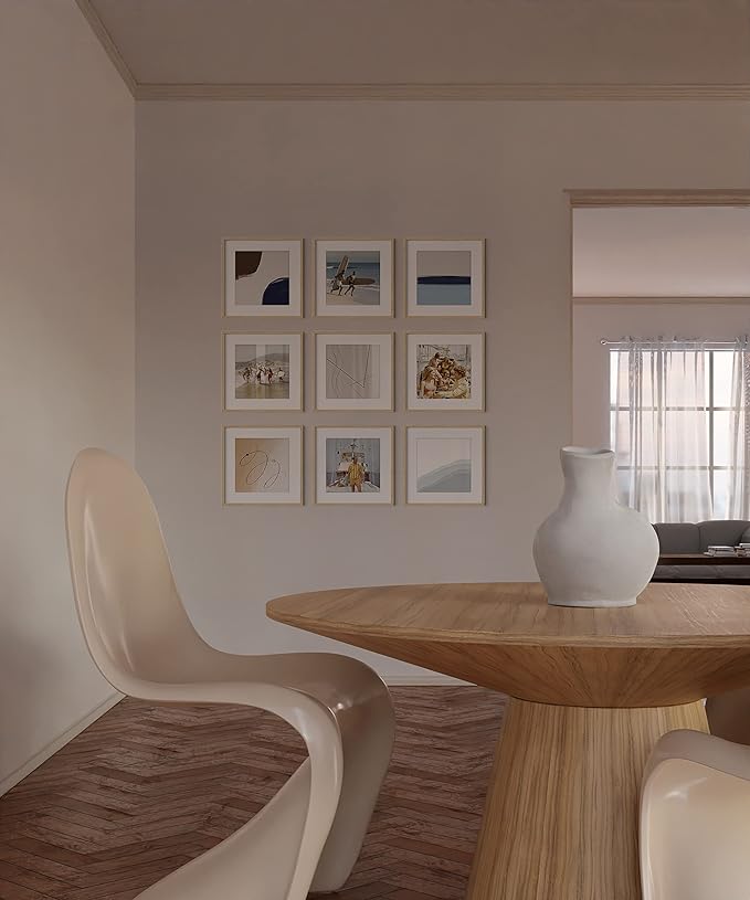 - SET OF FRAMES FOR GALLERY WALL: Our 16x16 picture frame square set of 9 is meticulously constructed using natural oak wood, known for its timelessness and durability. The slim profile of the 9 picture frame set wood effortlessly blends into any interior decor, adding a contemporary touch. The clean lines and sleek design make the 16 x 16 picture frame gallery wall set a perfect choice for those seeking a stylish, understated display solution