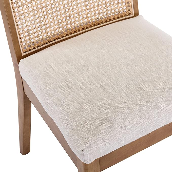 VESCASA Upholstered Dining Chairs with Square Rattan Back, Armless Padded Linen Cushion Dining Chairs with Wood Legs for Dining Room, Kitchen, Set of 2, Natural Frame
