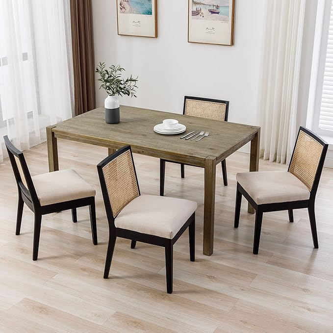 - MODERN DESIGN These modern dining chairs feature a padded cushioned seat, a square rattan back, and black wood legs. Simple but elegant, they will be a great addition to your home