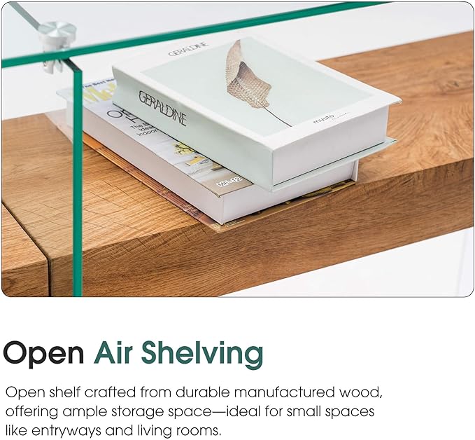 ivinta Glass Console Table with Storage, 31.5'' Modern Narrow Entryway Table for Small Space with Natural Wood Shelves for Living Room, Hallway, Foyer, Bedroom 5103 (Natural)
