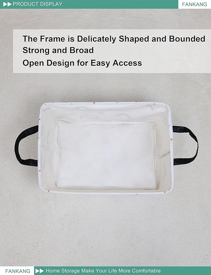 FANKANG Storage Bins, Nursery Hamper Canvas Laundry Basket Foldable with Waterproof PE Coating Large Storage Baskets for Kids Boys and Girls, Office, Bedroom, Clothes,Toys(Rec-Love Rainbow