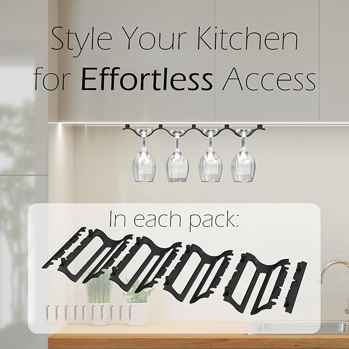 Bariboo Wine Glass Storage Case – Hang 8-12 Glasses on Your 18.7 x 9 x 1.7 In., Dust-Free Wine Glass Holder – Under-Shelf & Under-Cabinet Wine Glass Holder Rack with Assembly Manual & Video