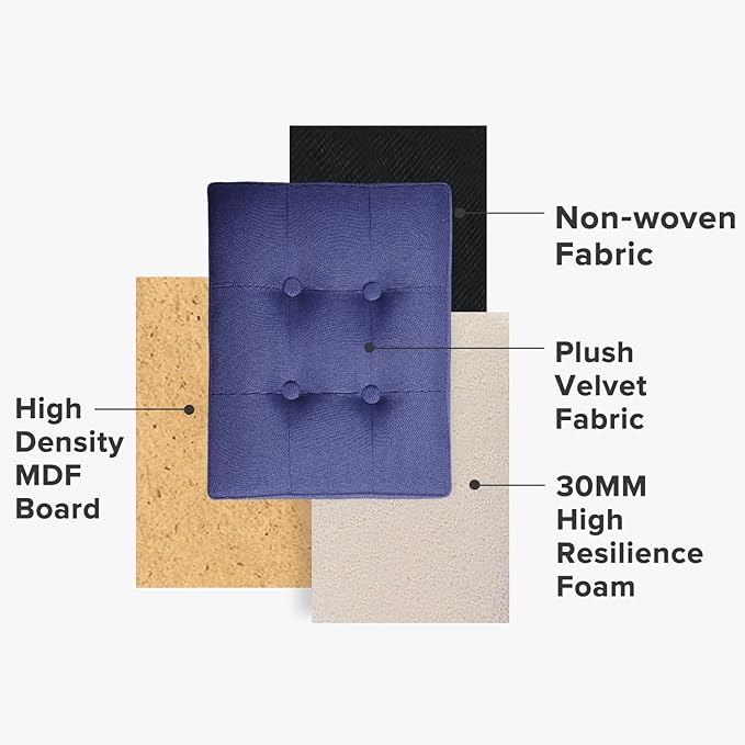 LINMAGCO Storage Ottoman Folding Foot Stool Foot Rest with Side Pocket Modern Ottoman with Storage Short Sofa Stool Linen Cloth 17x13x13(Navy)