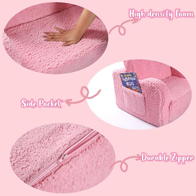 Kids Chairs for Toddler, 2-in-1 Toddler Soft Sherpa Couch Fold Out, Convertible Sofa to Lounger for Girls and Boys, Pink