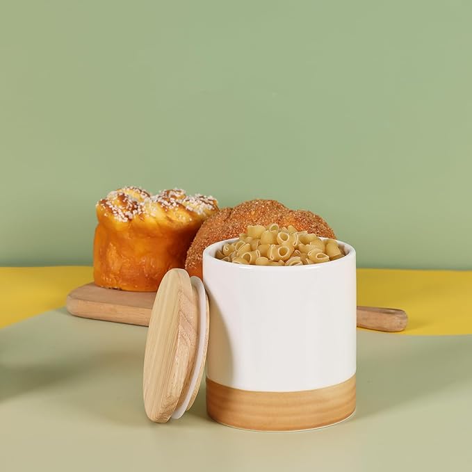 - Advantages of Porcelain:This Food Storage Jar is made of ceramic material, which is easier to clean than other materials. Note: Wooden covers must be hand washed