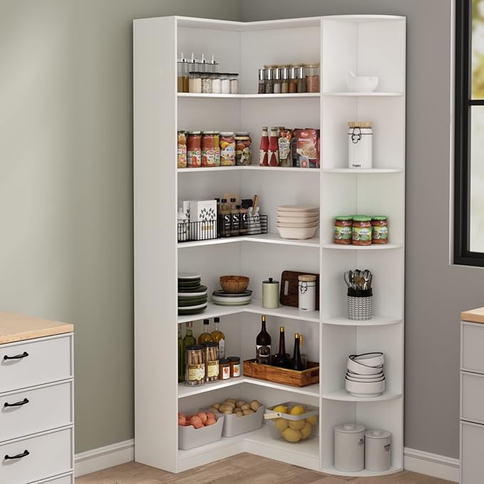 - 【Ample Storage & Display Space】Boasting a 6-tier shelf, the Loomie large corner shelf provides more vertical storage and display space for your books, plants, photos, CDs, crafts, and more. Additionally, its open shelf design gives you easy access to items and provides greater flexibility in terms of storage. The back features a full baffle design that prevents your beloved items from accidentally falling. With this Loomie solution, you can make use of the corners in your home, creating a snug feel while enjoying plenty of storage.