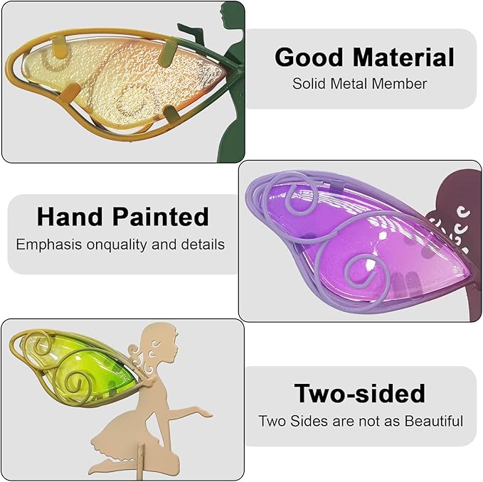 John's Studio Fairy Decorative Garden Stake - Outdoor Metal Pathway Decoration Dual Purpose Indoor Hanging Wall Decor for Garden Patio Yard Lawn Pathway Ornaments - 6PCS