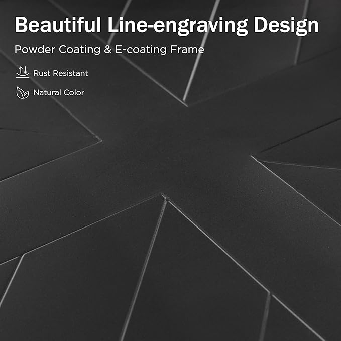 - Sturdy Metal Frame: The powder e-coated process creates a tough, durable finish that resists chipping, cracking, and peeling. It provides excellent protection against corrosion, even in harsh outdoor environments