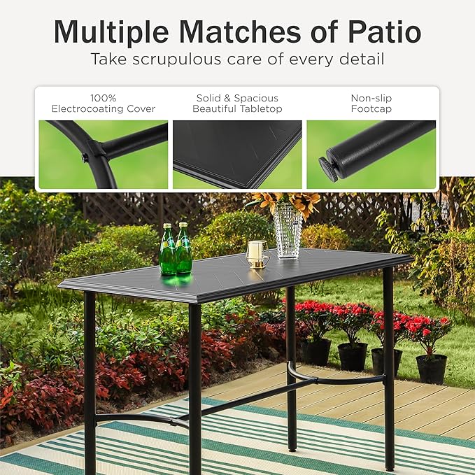 - Table Size: This counter height outdoor bar table (56" L×28" W×36.8" H) is designed for comfortable socializing. Ideal for gatherings, it provides ample space for drinks and snacks when entertaining guests