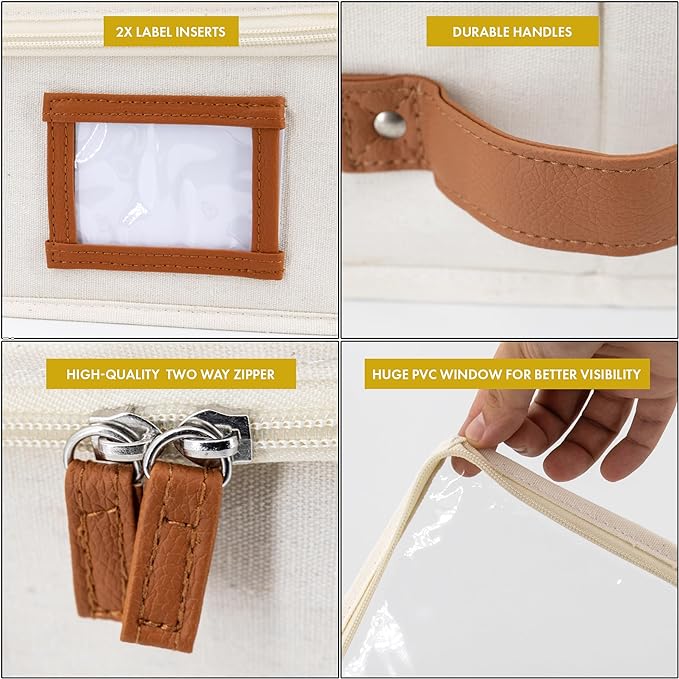 - ๐๐๐ข๐ง๐๐จ๐ซ๐๐๐ ๐๐จ๐ฎ๐๐ฅ๐ ๐๐๐๐ฎ๐ซ๐ ๐๐๐ง๐๐ฅ๐๐ฌ: Homelux Theory's storage boxes with lids for organizing comes with 3 fortified handles (Front, left and right), for effortless pull, slide, push & secure lift. The handles of these shallow under bed storage are also precisely stitched inside out, with additional rivets to strengthen the holding capacity that helps to withstand the constant pulling in and out of under the bed. These stylish storage for under beds can hold up to 35 lbs fo heavy-duty use.