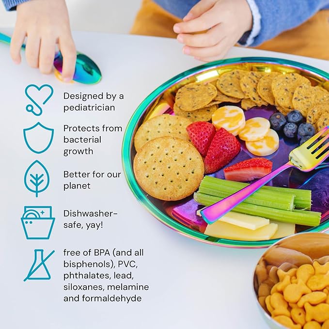 - Safe and Non Toxic — Ahimsa kids silverware is crafted from high-quality 304 18/8 food-grade stainless steel. Free from BPA, PVC, phthalates, melamine, and lead, ensuring no harmful chemicals leach into your food. These rainbow spoons and forks are perfect for health-conscious parents who prioritize safety.