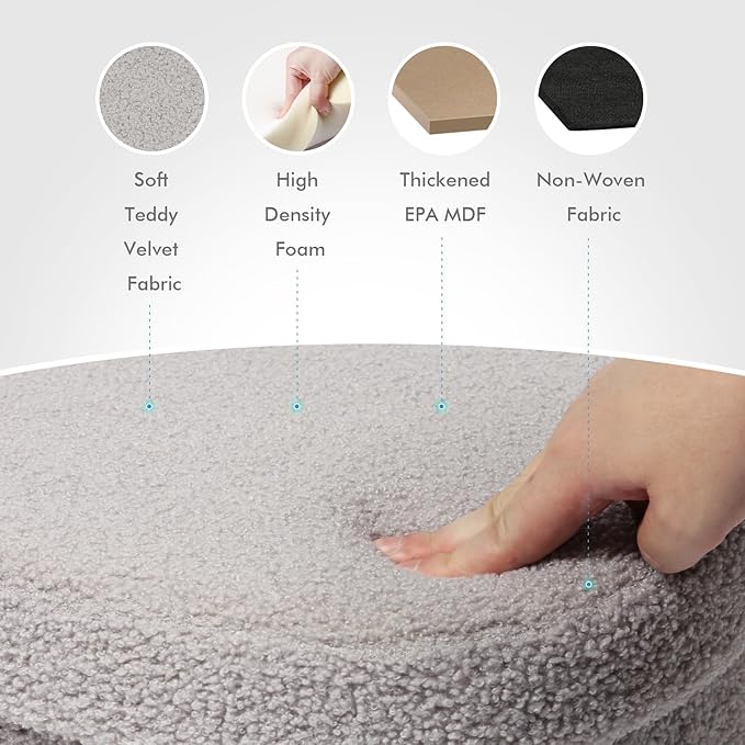 - 【Sturdy & Durable】The stool body wrapped in Top-quality Faux lamb fleece offers ultimate soft and comfort. The medium density fiberboard used in this ottoman is made from FSC certified wood. 15 inches is an ergonomically comfortable height for most people.