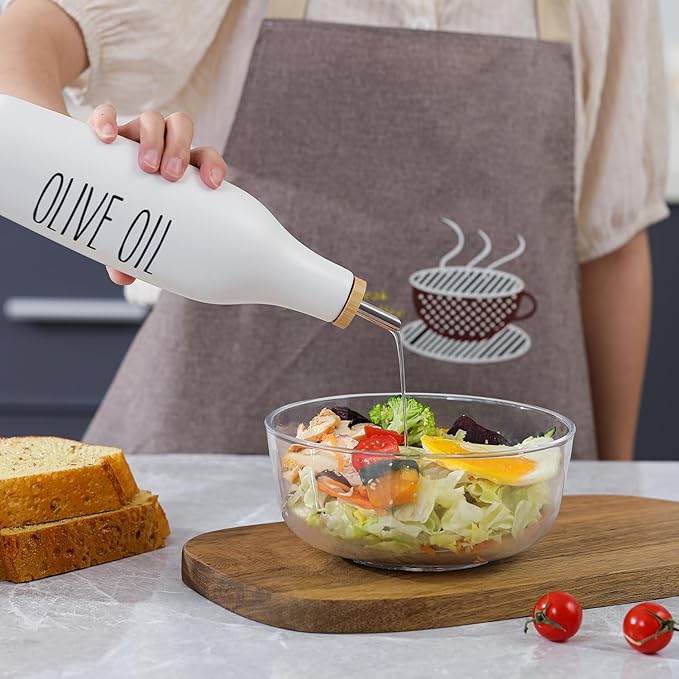 - Ceramic Oil Dispenser: 16.9oz Olive Oil Cruet Bottle with Bamboo Cap and Stainless Steel Spout