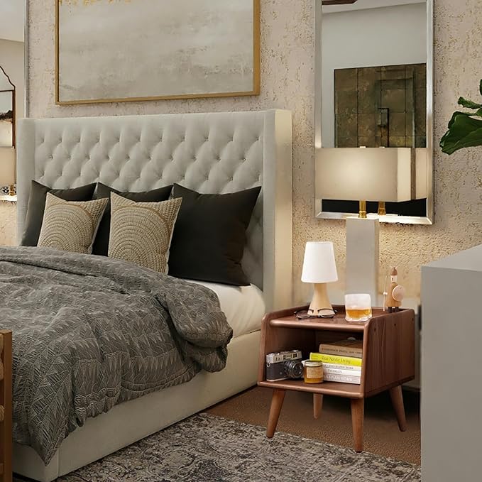- Distinctive Design: This multifunctional bedside cabinet features an open shelf for convenient storage and incorporates a three-sided protective design. The thoughtful design of the tabletop guard prevents items like glasses or headphones from rolling off. Moreover, with a 16cm ground clearance, it enables easy cleaning with a robot vacuum cleaner.