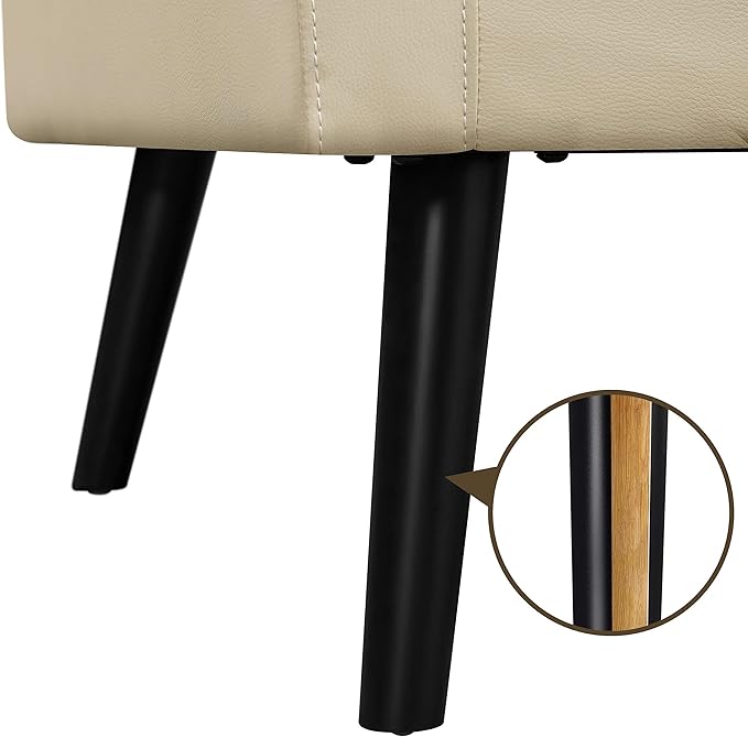 Yaheetech Mid-Century Accent Chairs, PU Leather Modern Upholstered Living Room Chair, Cozy Armchair Button Tufted Back and Wood Legs for Bedroom/Office/Cafe Beige 2PCS