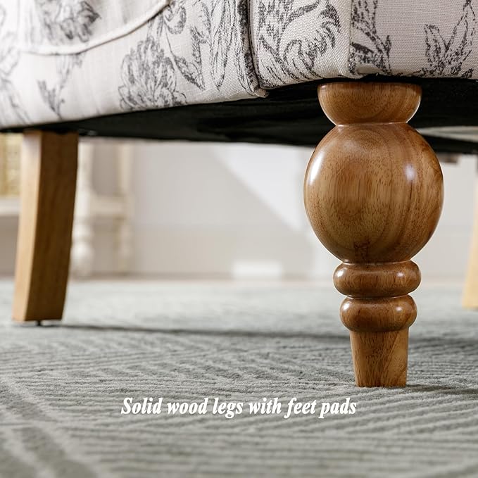 DUOMAY Tufted Accent Chair Set of 2, Modern Linen Upholstered Wingback Side Arm Chair for Living Room Bedroom with Wood Legs, Comfy Reading Guest Chair for Office, Beige Flower Pattern