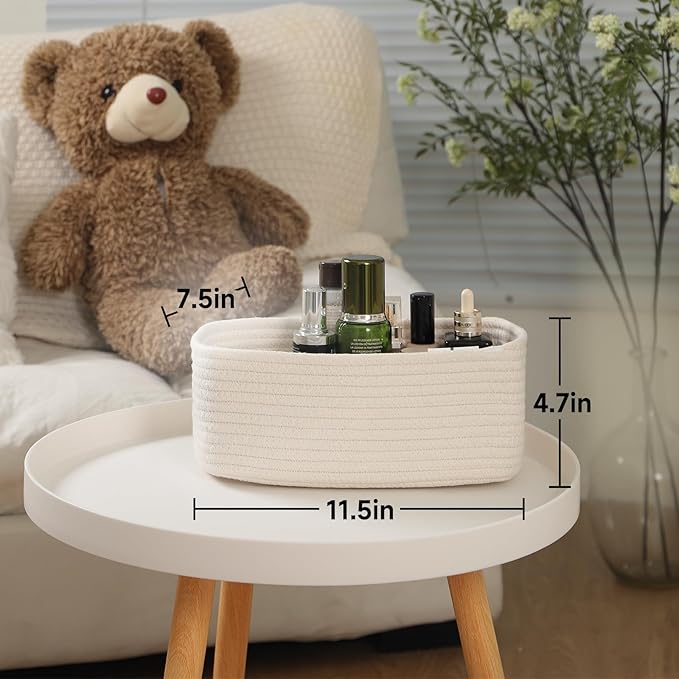- [ Compact Size ]: With dimensions of 11.5 x 7.5 x 4.7 inches, this rectangular basket is designed to accommodate most small household items. Each set of 3 pieces can be sorted to store cosmetics, jewelry, baby diapers, towels, remote controls, keys, credit cards, wallets, charging cables, toys, snacks, paper towels, and more