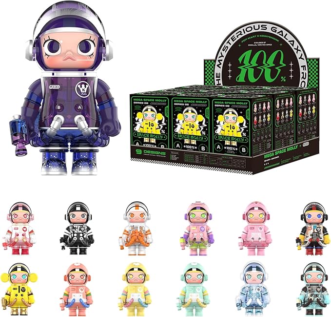 - POP MART MEGA SPACE MOLLY 100% 2-B Figures: Blind box toys are collectibles that come in a sealed box, with the content unknown to buyers until they open it. This collection contains 8 regular figures, and 5 hidden edition (Cheer Bear, Birthday Bear, Wish Bear, META, MELTING).