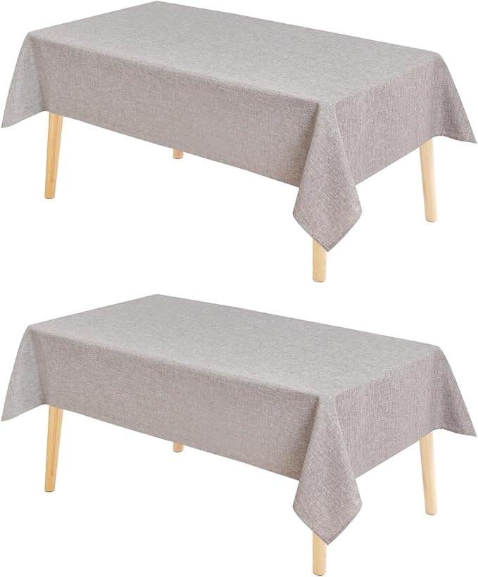Hiasan 2 Pack Faux Linen Rectangle Tablecloth - Wrinkle and Stain Resistant Washable Table Cloth for Kitchen Dining Room Holiday Table Cover for Party Dinner, Stone, 60 x 102 Inch