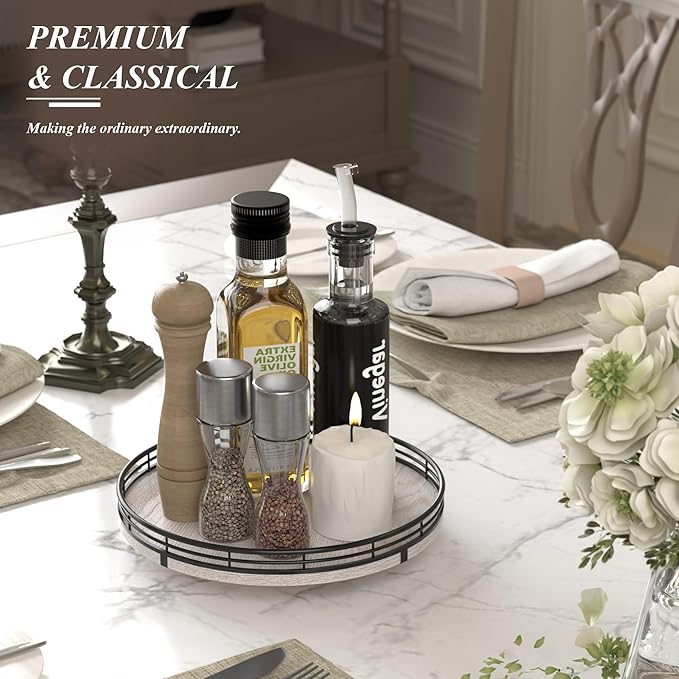 - πππΒ°ππππππππ: The base is made of solid wood, and the spinning mechanism is made of steel ball bearings, which are well-built and allow for 360Β°smooth spinning. This Lazy Susan is very attractive and very easy to use to keep your spices, condiments, and more organized and accessible.