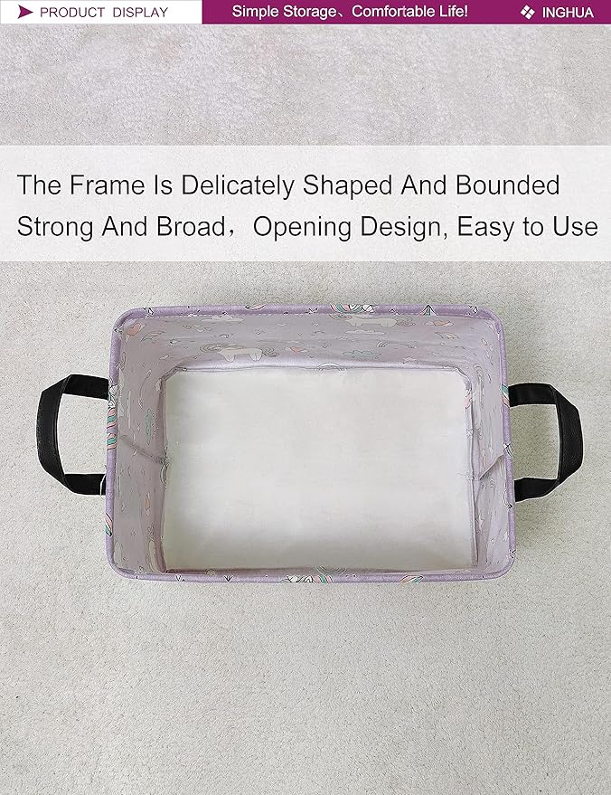 Rectangular Storage Basket Fabric Organizer Bin for Toys,Books,Clothes,Gifts,Pets-Perfect for Home,Office,Nursery,Dorm,Shelf(Rec-Unicorn)