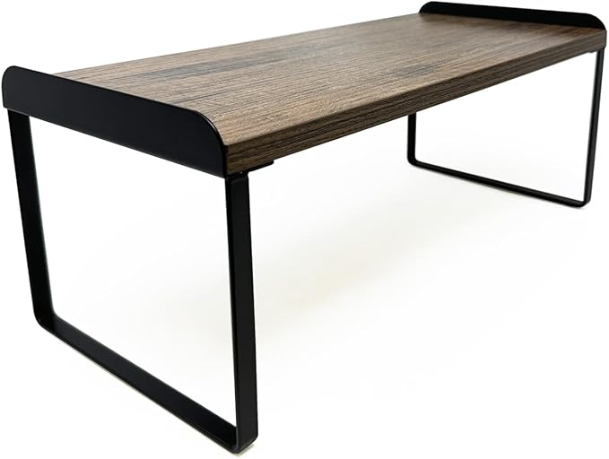 Mitus Shelf Organizer and Storage, Tiered Wood Cabinet Rack for The Kitchen Counter, Bathroom Counter, Pantry Cupboard, Office Desk Bookshelf, 16" Wide Walnut Brown and Black