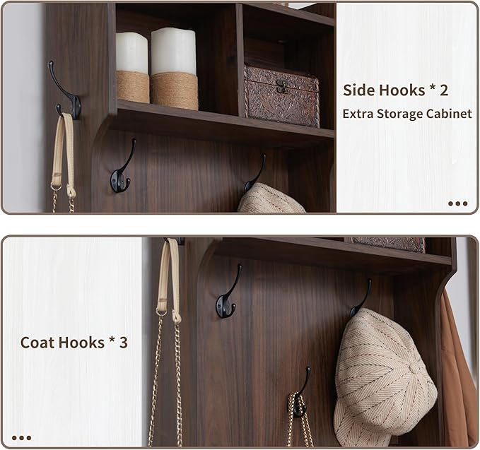 - Ample Storage Capacity: Featuring 6 shoe cubbies, 5 double coat hooks, and 2 overhead compartments, plus a spacious bench top for sitting or displaying decor. Keep your coats, hats, shoes, and other essentials neatly stored and easily accessible, while maintaining a clutter-free entryway.