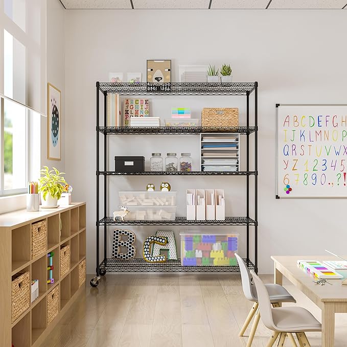 Seville Classics UltraDurable Heavy Duty NSF Solid Steel Wire Rack Storage Unit, Organizer for Garage, Warehouse, Office, Restaurant, Classroom, Kitchen, Black, 5-Tier Shelving, 60" W x 24" D