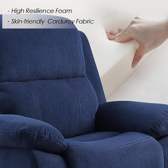 Ulax furniture Corduroy Kids Recliner Chair, Toddler Armrest Sofa Couch, Ergonomic Adjustable Lounge Sofa with Footrest, Padded Backrest, Storage Arms, Navy Recliner for Girls and Boys