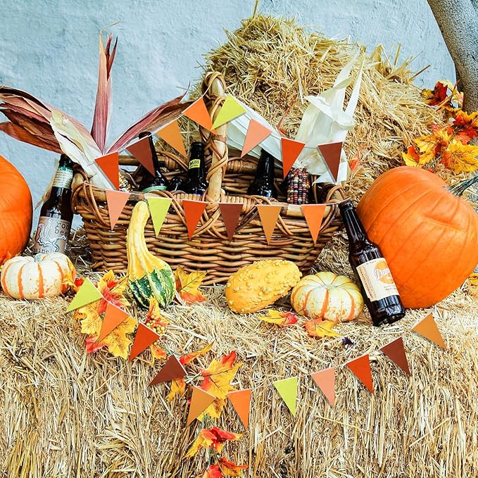 164 ft Fall Pennant Banners Orange Banner Decorations Pennant Flag Garland Bunting for Happy Fall Decor Thanksgiving Day Harvest Autumn Wedding Birthday Party Outdoor Garden Hanging Decoration