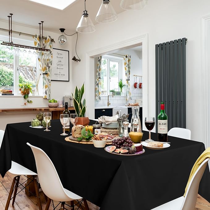 sancua 4 Pack Black Tablecloth 60 x 84 Inch, Rectangle Table Cloth for 4ft Tables - Stain and Wrinkle Resistant Washable Polyester Table Cover for Dining Wedding Banquet Party Buffet Restaurant