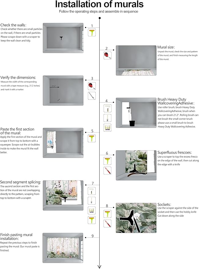 - Warm tip: This mural is not peel and stick, you need to buy your own glue, it is recommended to use Heavy Duty Wallcovering Adhesive.