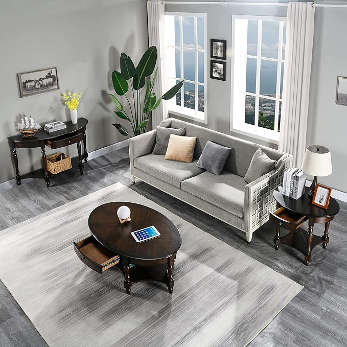 - What you get? One Carvings Side oval end table with a big drawer plus storage shelf. One living room table which meet all your need for end table, Large storage space? Beautiful surface? High quality? It is belong this sofa side table. We provide a one-year warranty, if you are not satisfied with the product, you can return it at any time.