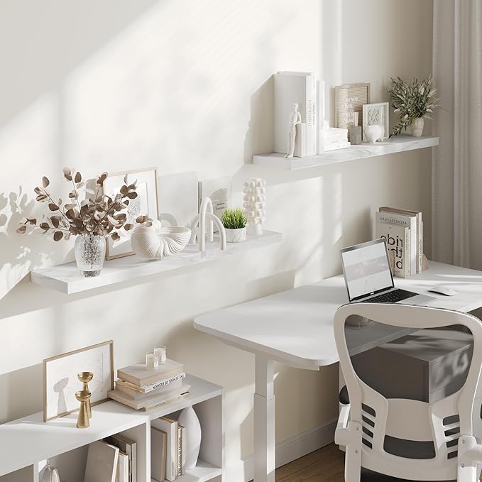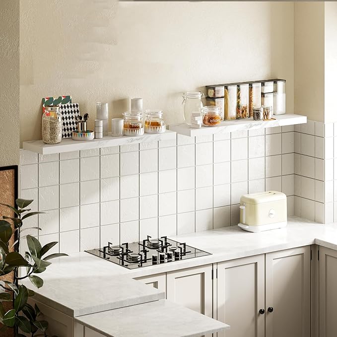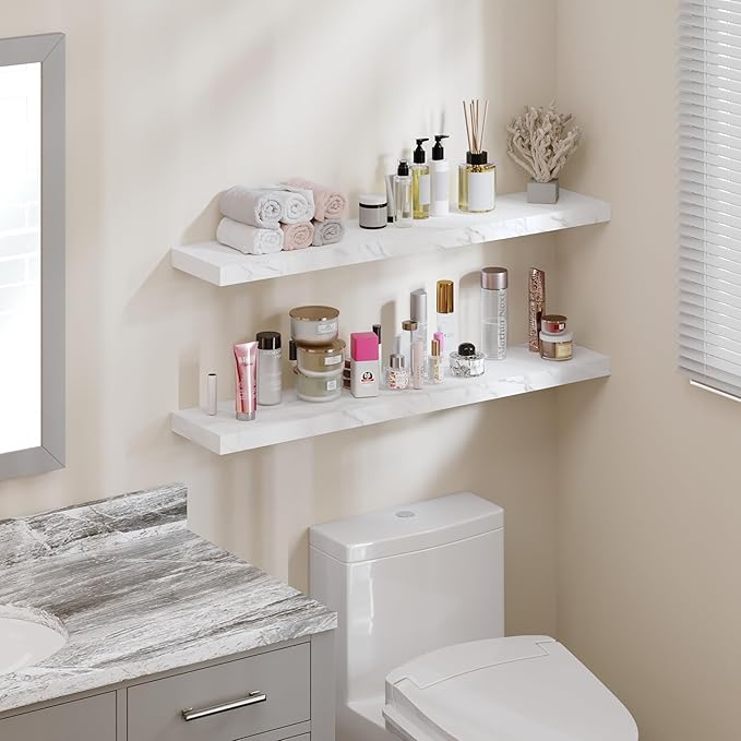 - GREAT FOR ANY ROOM: Our wood floating shelves are made of MDF with a frosted surface texture for a mordern feel that blends perfectly into a variety of different scenes; Having this large floating shelf not only for its decoration effect, but also for its high practicality; It can be used for organizing all household rooms, such as bedroom, living room, study, toilet, cloakroom, even kitchen and warehouse