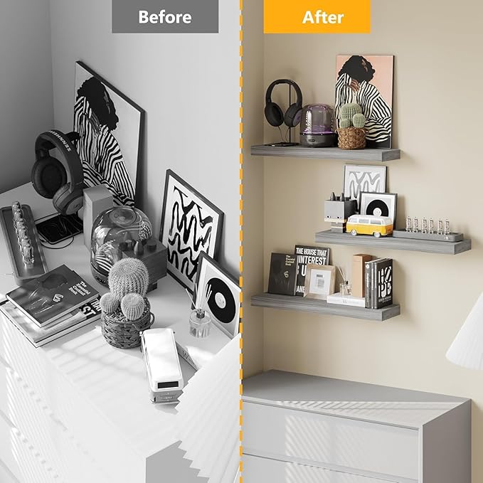- Concealed support & simple installation: The support design that extends into the shelf is strong and can hide the bracket well, achieving a simple and beautiful decorative effect; Moreover, the installation is very simple; The parts and installation instructions for installation are included with the package; The installation can be completed in as short as 15 minutes as long as the order of the instructions is followed
