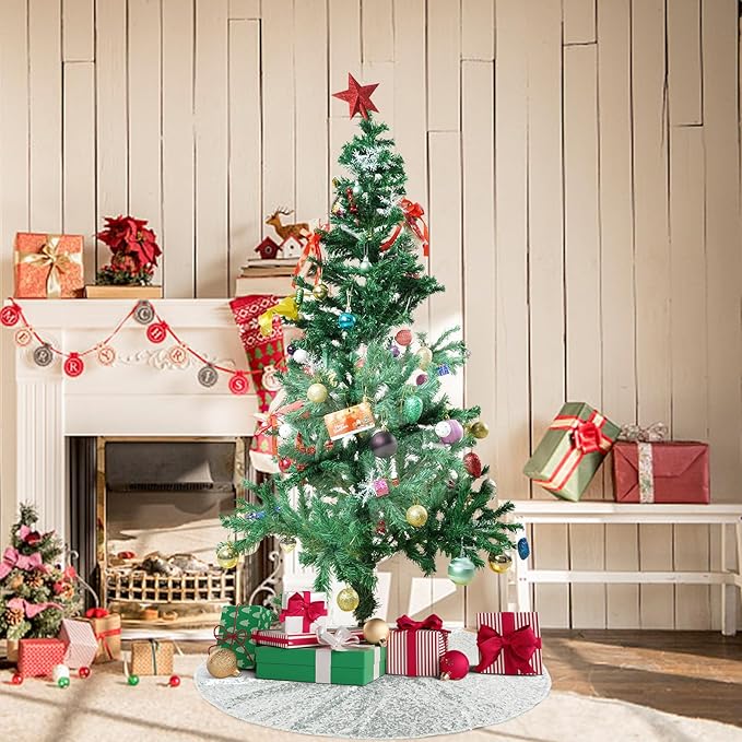 Eternal Beauty Christmas Tree Skirt, 36 Inch Silver Sequin Tree Skirt Small Xmas Tree Skirt for Christmas Tree Decorations