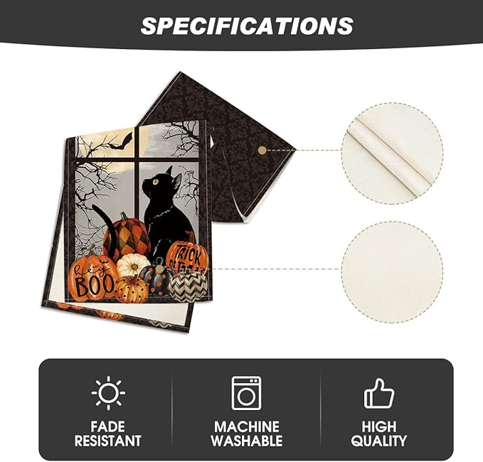 Artoid Mode Black Cat Pumpkins Boo Halloween Table Runner, Trick Or Treat Seasonal Kitchen Dining Table Decoration for Home Party Decor 13x108 Inch