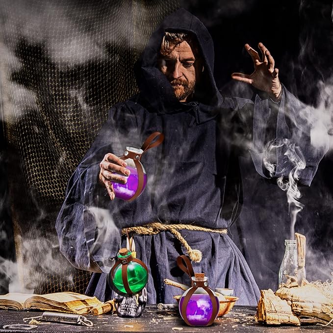 - Package Content: the package comes with 6 pcs round cork bottles, 6 pcs medieval knight artificial leather belts, a good combination that will help you add ambiance to most witch or wizard related costume