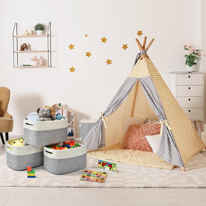 - 【【Multi-Purpose Storage Basket】 These 15” x 10” x 9” baskets for organizing are large enough,use them as soft rope baskets for storage,towel basket,pillow basket,book baskets or toy basket,the woven basket is also ideal for storing miscellaneous items like stuffed animals,treats,Magazines,baby diapers,make-up Nursery Baby Clothes and more.
