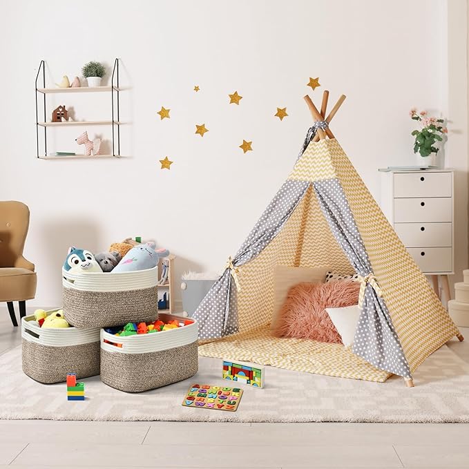 - 【Multi-Purpose Storage Basket】 These 15” x 10” x 9” baskets for organizing are large enough,use them as soft rope baskets for storage,towel basket,pillow basket,book baskets or toy basket,the woven basket is also ideal for storing miscellaneous items like stuffed animals,treats,Magazines,baby diapers,make-up Nursery Baby Clothes and more.