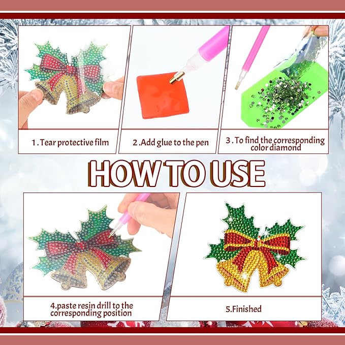 - Reliable and Quality: these DIY Christmas ornaments kits are mainly made with resin diamonds and acrylic card, shiny and vibrant that do not easily fade, the adhesive is strong, and the keychain material is durable, ensuring a lasting finish